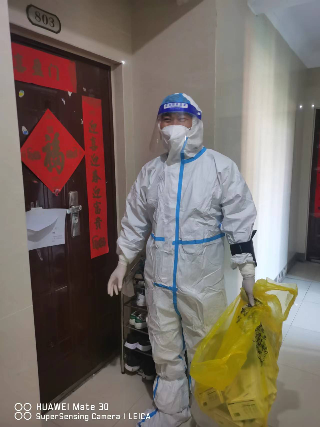 10月27日,合肥市濱湖區許多小區實行了封閉管理,社區工作人員工作量倍增,人手嚴重不足。得知情況后,八公司副經理楊輝攜手妻子一起加入這場戰“疫”,作為團隊中年齡較大的志愿者,也是一名黨員,他主動要求上門協助給業主做核酸取樣,分發抗原檢測試劑和生活物資,連續工作多天的他仍然保持著高昂的工作熱情,在社區志愿者中廣受好評。